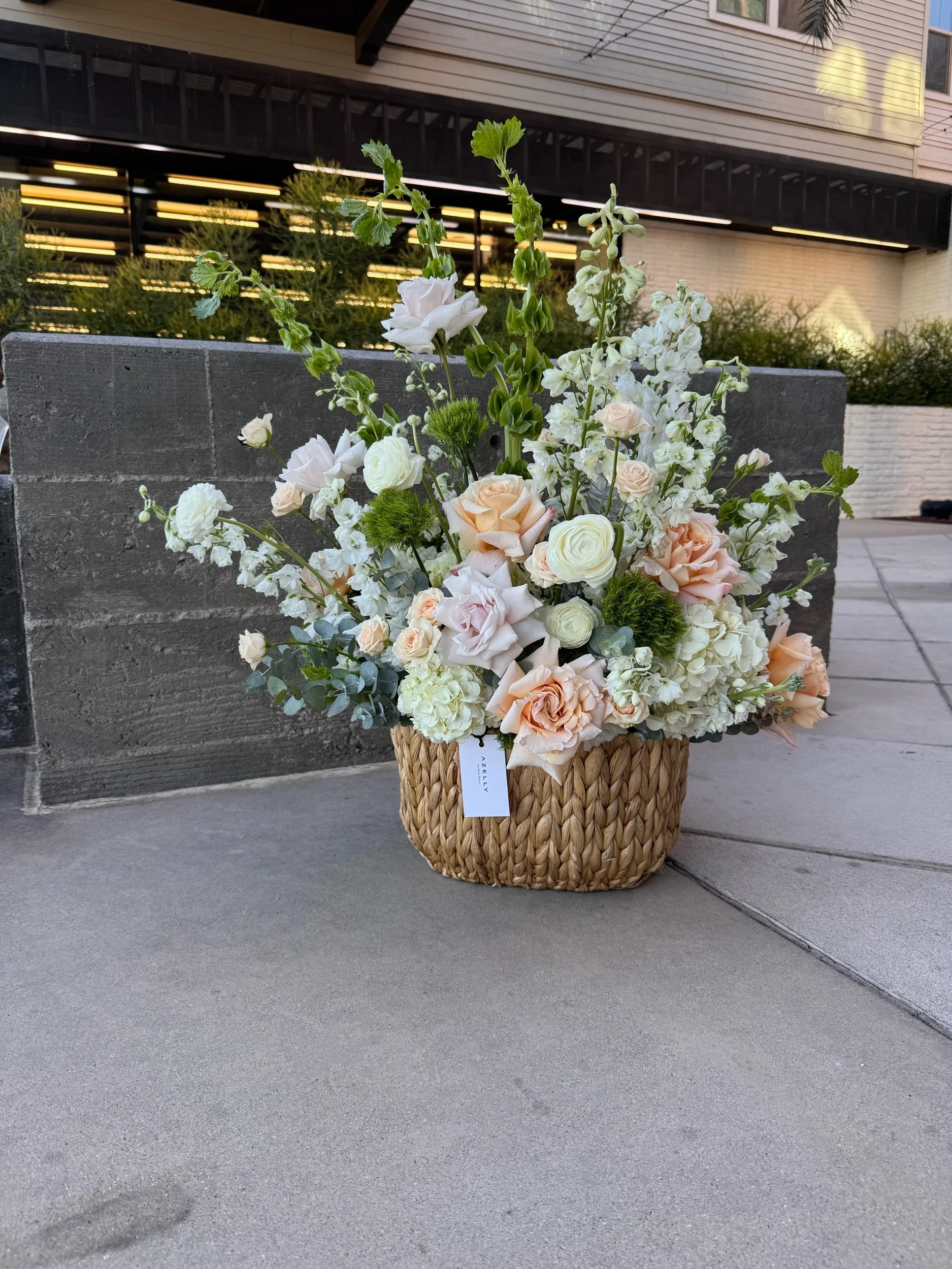 Arranged in a natural basket using professional-grade floral foam, this piece is created for both beauty and convenience—keeping flowers fresh for several days with minimal maintenance. Simply add a small amount of water daily to extend its life and enjoy its evolving charm.